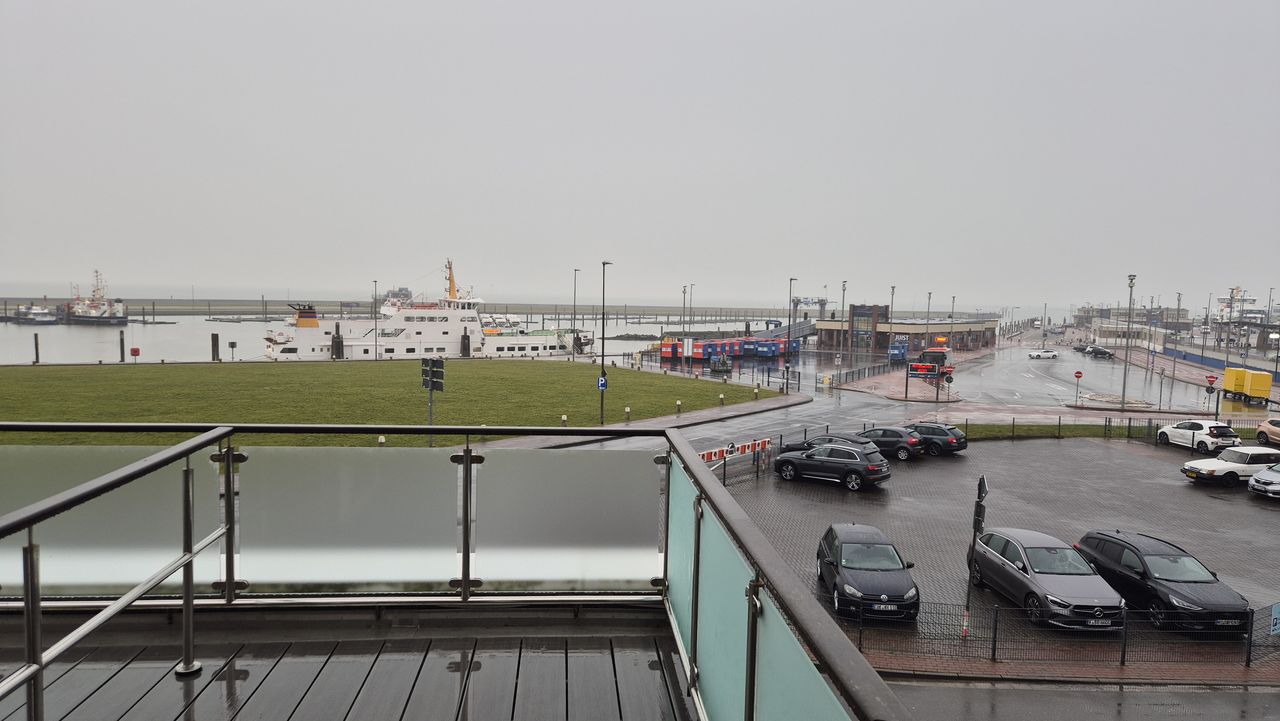 Vue aus méngem Zëmmer iwwert den Hafen